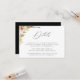 Elegant akvarell botaniskt skogsgrönska, tallkotts- och neutralfärgade påskliljeblommor arrangemang, bröllopsdetaljkort. Kortet har elegant kalligrafi "Detaljer" grafik, svart bakgrund och flera mallinjer för dina detaljer.