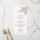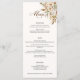 Ett höstbröllop spelas in i denna eleganta design med vattenfärgade rosor och grön i varma fallfärger av terracotta, elfenben, rost, kastanj, dammblått och grönt med beröring av guldgnistor. Den här designen har också unika textbilder i ett anpassat calligraphy-skriptteckensnitt med färg som kan anpassas i designredigeraren. Innehåller textfält för menyalternativ.