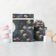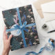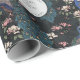 Detta Botaniska Svarta Bröllop Påfågel & Blommor Inpackningspapper har ett kinesiskt stiliserat mönster med handritade blå och turkosa påfåglar som sitter på blommande magnoliagrenar mot en elegant nästan svart bakgrund. All text är redigerbar. Anpassa rubriken, namnen och datumet på produktsidan genom att klicka på "Anpassa denna mall".