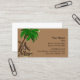 affärskorten på den tropiska strandtemat i Hawaiianska stil är designad med träd och surfa i bakgrunden. Skapat för en surfa- eller strandklädaffär eller surfa.