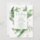 En fantastisk neutralt-babyduschinbjudan med en tropisk grönt löv ram med accenter av guld blad och dekoration. Eleganten har titeln "Oh Baby" i kalligrafiskriptet för grönt och är lätt att anpassa.