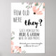 "Hur gamla var de?" skyltar perfekt för att fästa gästernas uppmärksamhet på fotografierna av Bride och Groom i olika åldrar. Se Samordna svarskort för det här spelet.