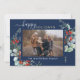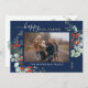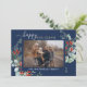 Botaniskt vattenfärgat Greenery Photo Navy Blue Julkort