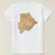 På framsidan av denna t-shirt visningar Batswana-flagga djärvt med sitt distinkta vita, fimbriserade svarta band på blå bakgrund. Detta motsvaras bakåt av ett attraktivt karta i Botswana.