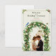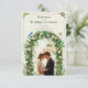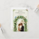 Förtrollande botanisk bröllopsinbjudan med en skogig valvport, vita blommor, kärleksfåglar och fjärilar - perfekt för utomhus-, trädgårds- eller rustika ceremonier .