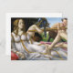 Postkort för Botticelli Venus och Mars. Tempera på Wood från 1483. Botticelli avstod från många av sina paganarbeten under sin karriär. Venus och Mars representerar en av hans vackraste målningar. I verket visas den romerska gudinna Venus som leker med Mars medan baby satyrs leker med Mars lans och hjälm. En vacker gåva till fläkt av Roman Mythology, Tidigt Renaissance Art och Sandro Botticelli.