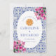 Bougainvillea Blå kakel Bröllop QR-kod Spara Datumet