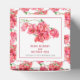 Bougainvillea blom akvarell konst på vit med mjuka röda högblad och blommor bröllop tack för gåva låda. Perfekt för ett varmt klimat tropisk botanisk klätterväxt högblad och blomma eller röd och vit tematiskt bröllop. Personlig med din brud och brudgums namn och bröllopsdatum. Andra matchande föremål finns tillgängliga. Original akvarell handmålning och design av Sarah Trett för www.mylittleedenweddings.com
