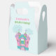Boung House Party Bount, hoppa och spela. Fira din lilla födelsedag med vårt färgstarka uppblåsbara rumstema. Med ett uppblåsbart hus för rosa, lila, grönt och tealslott. Bakgrunden är i ljusblå bakgrund med fuktiga blå moln. Perfekt tema för alla utomhusfödelsedagar. Den här designen är idealisk för alla åldrar. Helt anpassade. Ta en titt på de samordnande stationerna och presenterna.