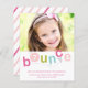 En modern inbjudan till barns födelsedag-partiet med färgstark studstypografi och personlig och bild. Klicka på knappen Redigera om du vill anpassa designen.