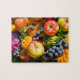 Denna färgstarka pussel, som är en stor skörd, omfattar äpplen, orange, färska örter, korndruvor, rödkål och gourder. En utsökt visning av färsk frukt och färska grönsaker.