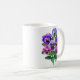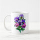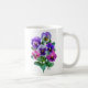 Färgfull vattenfärgad bukett av violetta pansyblommor.