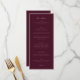 En formell burgunderröd menykort för brölloppsmottagning med en rik bakgrund i full färg, elegant versal rubrik, klassisk serif-typografi och en raffinerad dubbel linje-kant. Denna höga 10 x 23 cm stora meny är utformad för sofistikerade dukningar och koordinerade bröllopsdekorationer, med en polerad layout som passar för traditionella, romantiska och svarta band firanden.