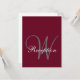 Mottagningskort för Bröllopsinbjudningar med Monogram. En elegant bourgognefärgad bakgrund med en grå initial i ett elegant typsnitt. Design av Elke Clarke ©. Anpassa med ditt eget monogram, personliga uppgifter och dina bröllopsfärger genom att välja "anpassa". En flexibel design som passar perfekt för att skapa dina egna unika mottagningskort.