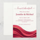Sätt tonen för en elegant brölloppshelg med denna burgunderfärgade middagsinbjudan för repetitionen, personifierad med parets namn, evenemangets plats och RSVP-information. Designad för att samordna sömlöst med din Burgunder Bröllopssamling, visar denna inbjudan rika, lager burgunderfärgade abstrakta vågor med en subtil draperi-inspirerad effekt - fångar 2026 års trend mot djupa, romantiska färgpaletter och tyg-inspirerad rörelse.