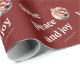 Denna minimalistiska design har ett klassiskt "Kärlek, fred och glädje" -budskap, hjärtliga önskningar, modern och elegant typografi på en rik burgunderröd bakgrund. Kombinerat med en lekfull julgransprydnads fotoram är detta inpackningspapper perfekt för alla som söker riktigt personligt julinpackningspapper med en glad touch. Helt anpassningsbart med ditt foto och namn. Perfekt för att sprida julglädje med modern stil och tidlös elegans.