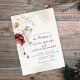 Vi presenterar vår utsökta, handmålade Burgundy Winter Elegance bröllopsinbjudan från vår senaste kollektion. Denna förtrollande design har en vacker blandning av burgunderröda och vita blommor, prydda med ömtåliga grönbruna släpande blad, som frammanar den perfekta atmosfären för vinterbröllop. De mjuka, dämpade tonerna av blekt gråbeige och vit akvarellbakgrund ger en elegant touch till denna pjäs.