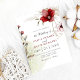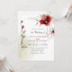 Vi presenterar vår exklusiva, handmålade Burgundy Winter Elegance bröllopsinbjudan från vår senaste kollektion. Denna förtrollande design har en vacker blandning av burgunderröda och vita blommor, prydda med ömtåliga grönbruna släpande blad, som frammanar den perfekta atmosfären för vinterbröllop. De mjuka, dämpade tonerna av blekt gråbeige och vit akvarellbakgrund ger en elegant touch till denna pjäs.