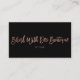 Ett elegant, modernt affärskort med snyggt boutique-logotyp med snyggt-manusskript med stil-typografi i folie faux ro guld på en enkel anpassade svart bakgrund.