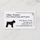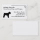 En enkel svart och vit design med en silhuett av Bouvier des Flandres med ett geometriskt mönster gräns i ett hörn.