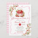 Bow Berry i kärlek jordgubbsins Möhippa Blommigt Rosa Ginghams inbjudan till