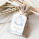 Bow Blommigt Vapensköld Rustic Blue Boy Baby Showe Presentetikett