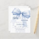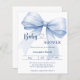 An elegant white background, decorated with a large blue bow. Personalize and add a name and party details.