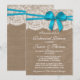 Den här orustiga blå buggen på burlap och snöre bröllop-middagsinbjudningar kommer att göra perfekten känd för alla brudar och brudar att vara! Utformningen har en fin blå bugg på en strålande bakgrund med en romantisk vintage vit snöre-effekttrim. Dessa inbjudningar kan vara en personlig för ert särskilda tillfälle och skulle göra perfekten till ett tillkännagivande för varje rustiskt bröllop, möhippa, förlovningsfest, födelsedagsfest och mycket, mycket mer. Observera att Zazzle endast säljer utskrivna inbjudningar så dessa inbjudningar har inga riktiga band-, bågar-, bräddnings- eller snöre-material.