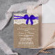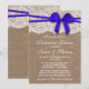 Den här orustiga blå buggen på burlap och snöre bröllop-middagsinbjudningar kommer att göra perfekten känd för alla brudar och brudar att vara! Utformningen har en fin blå bugg på en strålande bakgrund med en romantisk vintage vit snöre-effekttrim. Dessa inbjudningar kan vara en personlig för ert särskilda tillfälle och skulle göra perfekten till ett tillkännagivande för varje rustiskt bröllop, möhippa, förlovningsfest, födelsedagsfest och mycket, mycket mer. Observera att Zazzle endast säljer utskrivna inbjudningar så dessa inbjudningar har inga riktiga band-, bågar-, bräddnings- eller snöre-material.