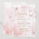 Rosa Blommigt Butterfly Baby Shower-inbjudan för barnflugan, en liten fjäril är på samma sätt som babyskor