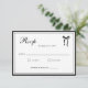 A timeless black-and-white wedding rsvp card exuding old money elegance and classic sophistication. The front features “RSVP” in vintage script, setting a refined tone. On the back, the couple’s names and a delicate bow ribbon, creating a romantic yet stately finish. Perfect for those seeking a design that blends heritage charm with understated luxury.