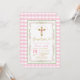 Bow Coquette Baptism Gold Cross Grandmillenial Pink Floral Gingham Invitation