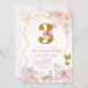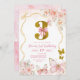 Bow Coquette Pink Butterfly Third Birthday Inbjudningar