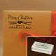 Frimärke dina julklappar och Juletiketter med den här träkonsten frimärke för en festlig och personlig beröring. God jul i ett skript ovanför en jultomte som dekoreras med en båge. Personligen med din familj namn så att alla vet från vem presenten är.