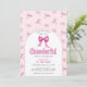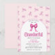 Bow Girl 1:a födelsedagsinbjudan. De flesta bokstäver är redigerbara - klicka på knappen "Anpassa ytterligare" för att redigera dem.