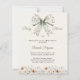 An elegant soft ivory background, decorated with a floral bow in muted green and muted pink. Personalize and add a name and party details. TExt: Baby in Bloom.
