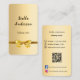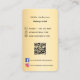 En faux guld tittar bakgrund. Dekorerad med en gyllene båge. Anpassa och lägg till namn, titel och kontaktinformation. Lägg till URL/länk för webbplatsen till Qr-koden. Med Facebook- och Instagram-ikoner. Svart text.
