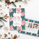 Fira säsongen i stil med en aning charm med chic på band. Detta festliga "Bow Ho Ho" julkort är inramat i elegantens raka helgdag, arrangerat som en krans för att ange en högstämd ton. Baksidan ger utrymme för tre mindre foton och ett helgdag-meddelande som ställs in mot en sansad grönt/teal bakgrund med ett känsligt båge mönster.Blandningen av rosa med rött rand och grönt med marint rand lägger till en snyggt på klassisk helgdag, färg för att meddela perfekten.