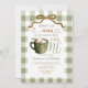 Bow Hot Cocoa 1st birthday Sage Green Gingham Invitation