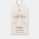 Add an elegant finishing touch to your Confirmation celebration with these round personalized favor tags featuring a refined ivory bow with pearl details and a subtle gold cross.