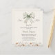 An elegant soft ivory background, decorated with a floral bow in muted green and muted pink. Personalize and add a name and party details. Text: She's tying the Knot.