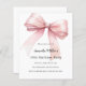 A white background, decorated with a pink large bow. Personalize and add a name and party details.