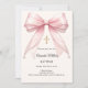 Bow Pink Ivory Pearls Girl Elegant Baptism Inbjudningar
