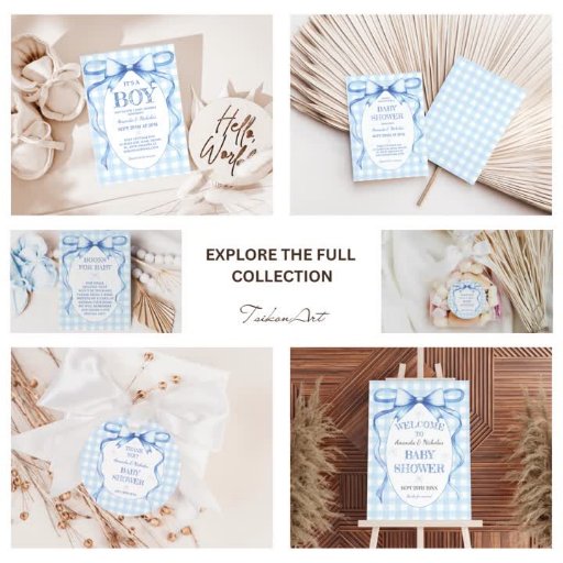 Bow Ribbon Blue Gingham Pojke Shower Inbjudningar