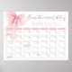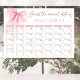 Chic Bow Rosa Coquette baby shower "Gissa förfallodatum" kalender, med ömt rosa band och eleganta detaljer. Perfekt aktivitet för gästerna att förutsäga barnets ankomst medan de lägger till en personlig och stilfull touch till din firande dekoration.