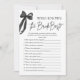 Svartbössan som känner bästa Möhippa är ett roligt och elegant sätt att underhålla gäster medan man firar den blivande bruden! Med en svart chic-buskdesign utmanar det här spelet vänner och familj att besvara frågor om bruden, från sak till hennes mest minnesvärda ögonblick. Det är perfektens isbrytare att sammanföra alla och skapa skrattfyllda minnen. Med den här snyggten och det engagerande spelet kan du lägga till en aning sofistikerad möhippa! 🎀 ✨ 👰
