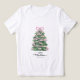 Symmetrical green tree with delicate pink bows and white garland loops elegant, feminine spruce artwork for tags and holiday stationery.