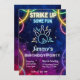 Strejka lite roligt med vårt Bowling Födelsedagsfest inbjudan! Perfektens för barn och vuxnor, det här anpassadet inbjudan har ett roligtens bowlingtema, skapar det idealiskt för en firande vid bowlinghallen.