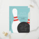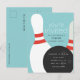 En modern, könsneutral födelsedagsinbjudan med bowlingklot och 2 käglor. Bjud in vänner att fira och spela ett roligt parti bowling för att fira ditt barns födelsedag. Den koordinerade mönstrade baksidan kan tas bort för att ge plats åt ytterligare information om festen, som vägbeskrivning.