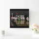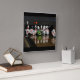 A clock featuring a photo of bowling pins turned into caricatures.